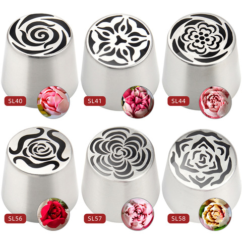 Nuevo paquete de 6 boquillas de flores de acero inoxidable con punta de tubería rusa Extra grande, juego de decoración de pasteles, puntas de glaseado de malvavisco rosa
